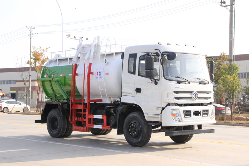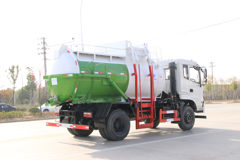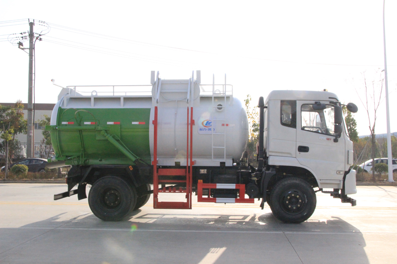罐體容積8~10m3,罐體厚度4.5mm,配備120L/240L掛桶提升翻轉機構,液壓系統,后蓋液壓鎖緊開啟,罐體可以舉升自卸,尾部帶自流閥;用于運輸液態垃圾,其特點操作簡單,密封性好,無泄漏,無異味;可選裝固液分離功能,推板擠壓功能,常用于餐館的垃圾轉運處理