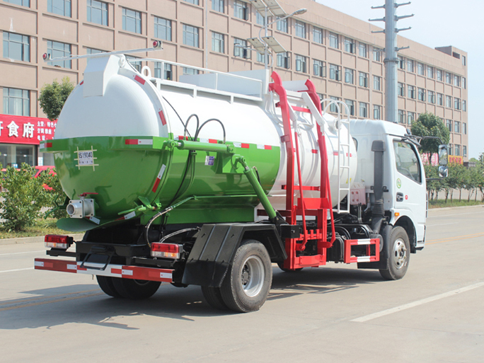 罐體容積7~8m3,罐體厚度4.5mm,配備120L/240L掛桶提升翻轉(zhuǎn)機(jī)構(gòu),液壓系統(tǒng),后蓋液壓鎖緊開啟,罐體可以舉升自卸,尾部帶自流閥;用于運(yùn)輸液態(tài)垃圾,其特點(diǎn)操作簡(jiǎn)單,密封性好,無泄漏,無異味;可選裝固液分離功能,推板擠壓功能,常用于餐館的垃圾轉(zhuǎn)運(yùn)處理