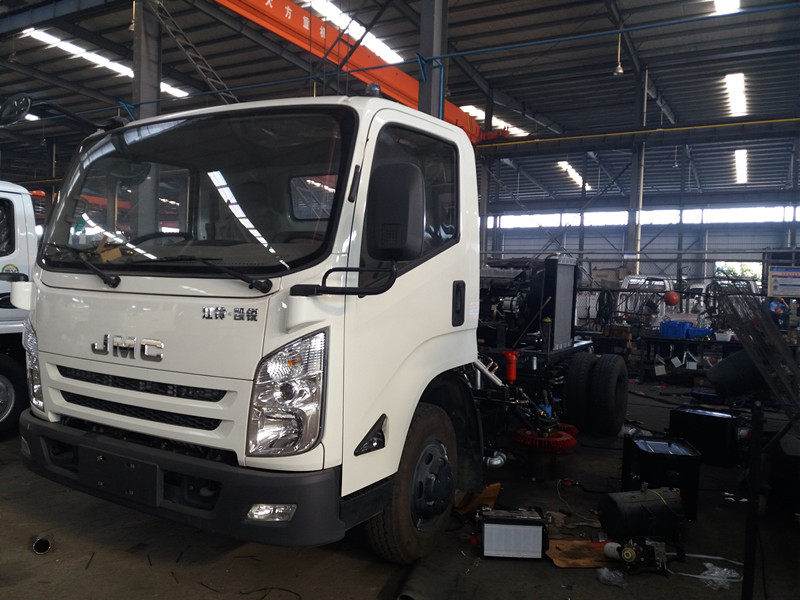 該車采用江鈴國五二類底盤,加裝副發動機、風機、垃圾箱、清掃裝置、低壓降塵系統、吸嘴、低壓沖洗系統、清水箱、高壓清洗系統、液壓系統、電控系統等部件改裝而成。