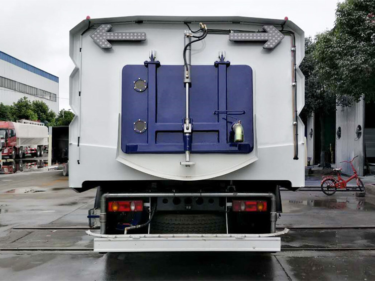 中置2掃盤、吸嘴、三洋馬達、德國原裝進口高壓水泵(前沖、側噴、中噴、后噴霧、側沖洗車水槍、垃圾箱自潔裝置)、萬向高壓路沿清洗、低壓泵前沖、不銹鋼水箱、垃圾箱;不銹鋼高壓管路、施耐德控制開關、美國傳感器、尾部LED箭頭燈、機油、垃圾箱、水箱均帶防溢或低水位報警裝置;倒車及洗掃狀態駕駛室內監視器、18m高壓沖洗卷盤、最大洗掃寬度3.5m;高壓沖洗高度≥21m。