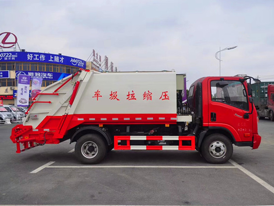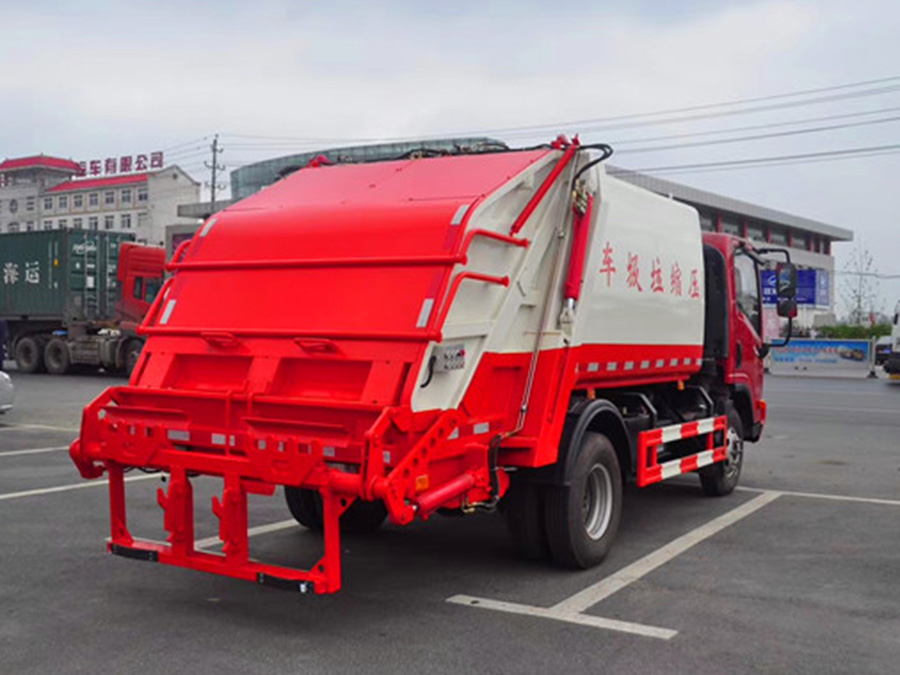 廂體材料為武鋼優質炭鋼,厚度為邊5mm,廂體容積為6立方米。由裝料機構、壓縮機構、卸料機構、油泵、油箱、控制閥等組成的液壓機構組成。裝料機構由支架、連桿機構、凸輪、掛鉤等組成,在油缸作用下,將垃圾桶內的垃圾自動翻轉倒入料斗內。新款有9支液壓扭制動,不帶副壓板,液壓控制操作系統為電動控制和手動控制。壓縮式垃圾車具有自動反復壓縮以及蠕動壓縮功能,壓縮比高、密封性好、裝載量大﹑操作方便、環保性好﹑整車利用功率高等優點。作業自動化,垃圾收集方式簡便、高效